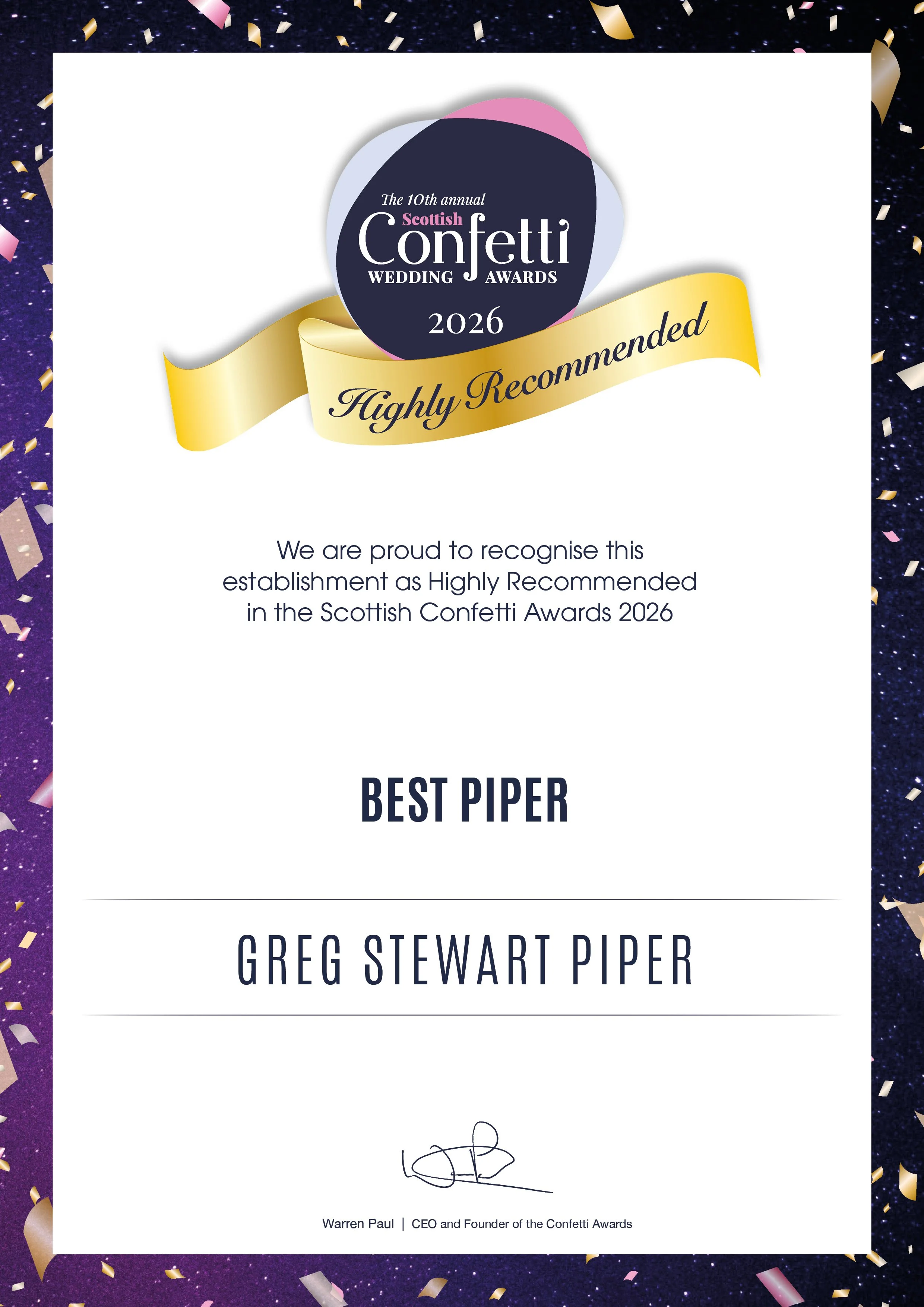Greg Stewart & Sons (Family Funeral Directors) & Greg Stewart Piper are proud to announce that Greg Stewart Piper is a Finalist in this years (2026) awards.